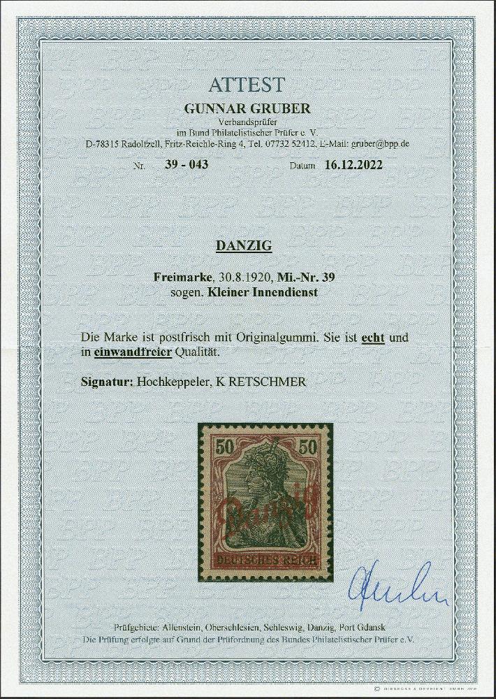| Prüfer: | Gruber, Gunnar (BPP (Bund Philatelistischer Prüfer)) |