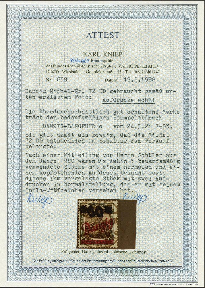 | Prüfer: | Kniep, Karl (BPP (Bund Philatelistischer Prüfer)) |