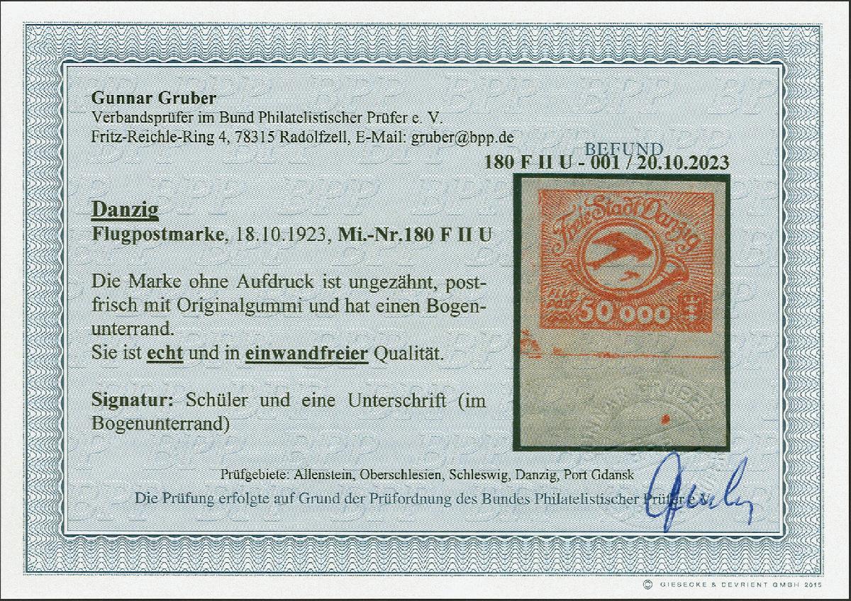 | Prüfer: | Gruber, Gunnar (BPP (Bund Philatelistischer Prüfer)) |