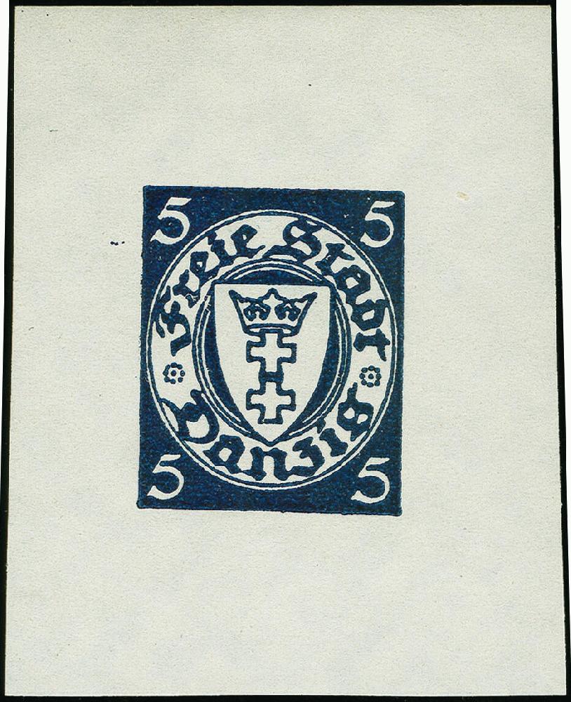 | Zusatzinformationen und Suchstichworte: | 383. Auktion Heinrich Köhler 14.–15. & 18.–23. März 2024 Los 7664 Danzig 1924, Staatswappen 5 Pfennig als ungezähnter Probedruck in der Farbe Blau mit Wasserzeichen 5 (Hakenkreuze) als Einzelabzug im Blockformat, postfrisch Ausruf 100,00 EUR |