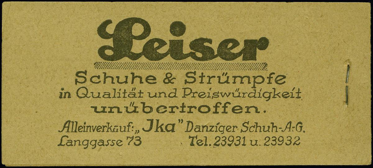 | Zusatzinformationen und Suchstichworte: | 383. Auktion Heinrich Köhler 14.–15. & 18.–23. März 2024 Los 7690 Danzig 1928, Markenheftchen 3 Gulden mit ONr. 2 und Deckel schwarz auf braun mit Datumsstempel "9.2.29", postfrisch mit wenigen, vermutlich herstellungsbedingten verkürzten Zähnen und Deckelrückseite mit winzigem Eckbug sowie leichte radierte Bleistiftbeschriftung auf der Vorderseite, insgesamt für Markenheftchen in einwandfreier Erhaltung Ausruf 1.000,00 EUR |