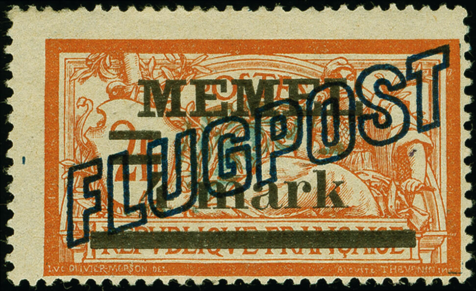 | Zusatzinformationen und Suchstichworte: | 383. Auktion Heinrich Köhler 14.–15. & 18.–23. März 2024 Los 2920 Memel 1921, Flugpost 4m. mit blauem Probeaufdruck "FLUGPOST" von links unten nach rechts oben verlaufend, sauber ungebraucht, oben ein fehlender Zahn, sonst tadellos Ausruf 200,00 EUR |