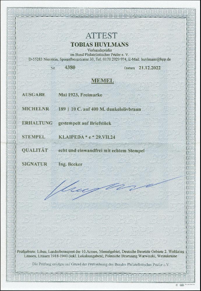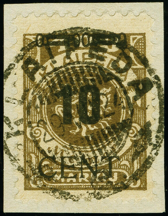 | Zusatzinformationen und Suchstichworte: | 383. Auktion Heinrich Köhler 14.–15. & 18.–23. März 2024 Los 7703 Memel 1923, 10 Cent auf 400 Mark dunkelolivbraun mit klarem Stempel "KLAIPEDA 29.VII.24" auf Briefstück in einwandfreier Erhaltung Ausruf 150,00 EUR |