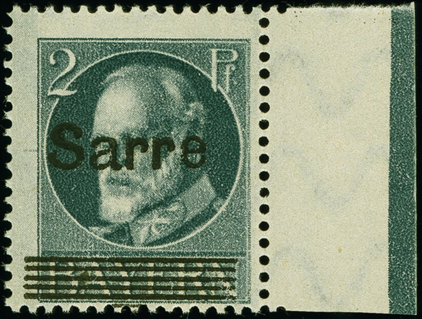 | Zusatzinformationen und Suchstichworte: | 383. Auktion Heinrich Köhler 14.–15. & 18.–23. März 2024 Los 2894 Saar Ludwig mit Aufdruck SARRE, nicht ausgegebener Werte: 2 Pfg. mit rechtem Seitenrand, postfrisch, herstellungsbedingter Papiereinschluß, tadellos Ausruf 500,00 EUR |