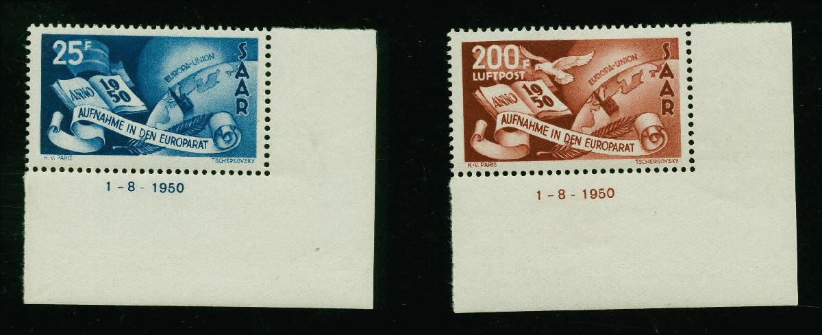 | Zusatzinformationen und Suchstichworte: | 383. Auktion Heinrich Köhler 14.–15. & 18.–23. März 2024 Los 7754 Saarland 1950, Europarat 25 und 200 Franc jeweils aus der rechten unteren Bogenecke mit Druckdatum "1-8-1950", postfrisch, in tadelloser Erhaltung Ausruf 80,00 EUR |
