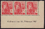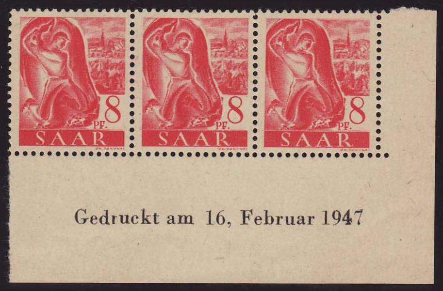 | Zusatzinformationen und Suchstichworte: | Christian E. Geigle Briefmarkenfachhandel Los 0002829986 Saarland 1947, Freimarken "Saar I", 8 Pf. rot, waagerechter postfrischer Dreierstreifen aus der rechten unteren Bogenecke mit Druckdatum "16, Februar 1947", dabei der nicht häufige Setzfehler "Komma statt Punkt nach 16", Zähnung minimal angetrennt, sonst Kabinett, im Michel noch nicht gelistet, unsigniert mit FKB Geigle. Festpreis 49,00 EUR |