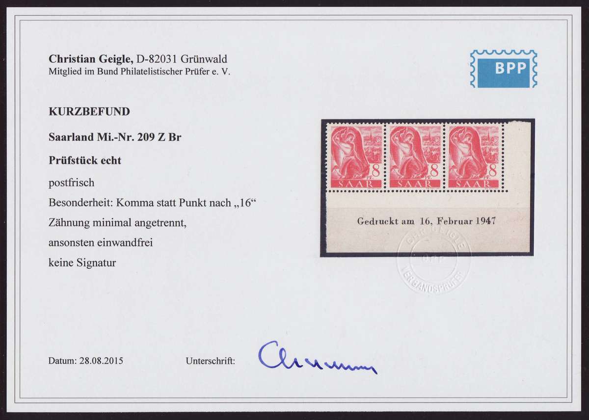 | Prüfgebiet: | Saarland (ab Mi-Nr. 206) |