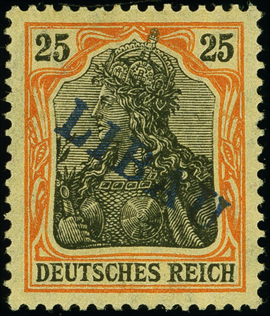 | Zusatzinformationen und Suchstichworte: | 383. Auktion Heinrich Köhler 14.–15. & 18.–23. März 2024 Los 7522 Deutsche Besetzung I. WK Libau 1919, Germania 25 Pfennig mit violettblauem Aufdruck in Type II, ungebraucht, in einwandfreier Erhaltung Ausruf 150,00 EUR |