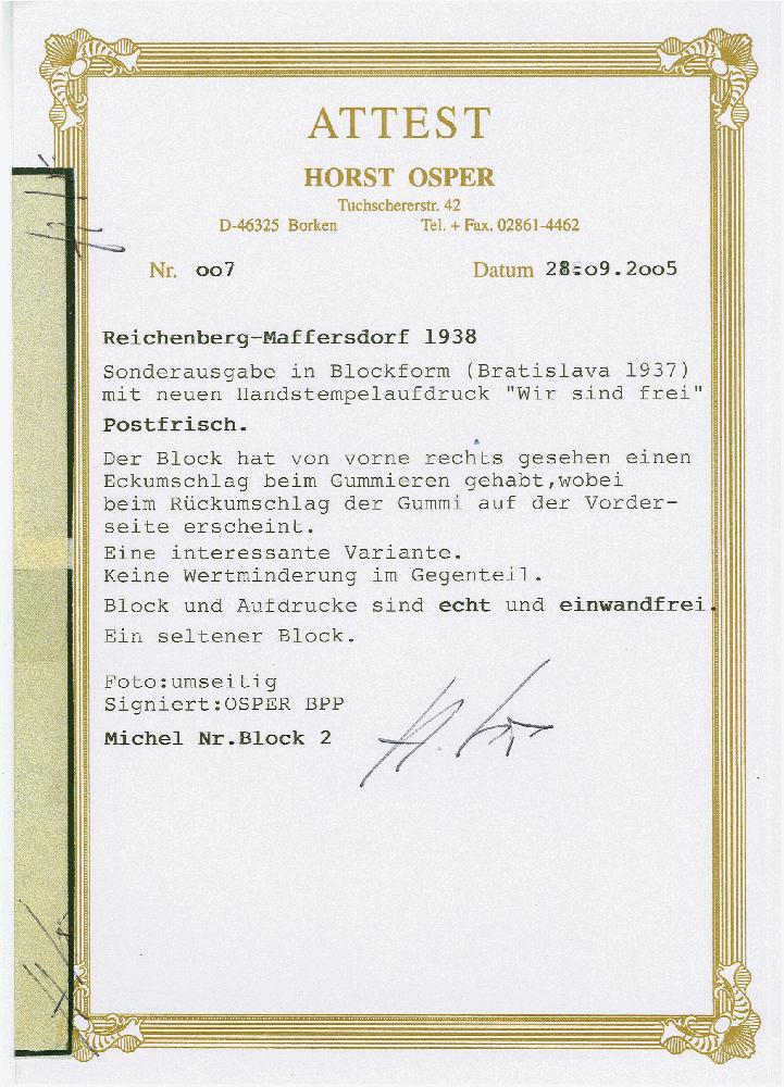 | Prüfgebiet: | Sudetenland Reichenberg Blocks |