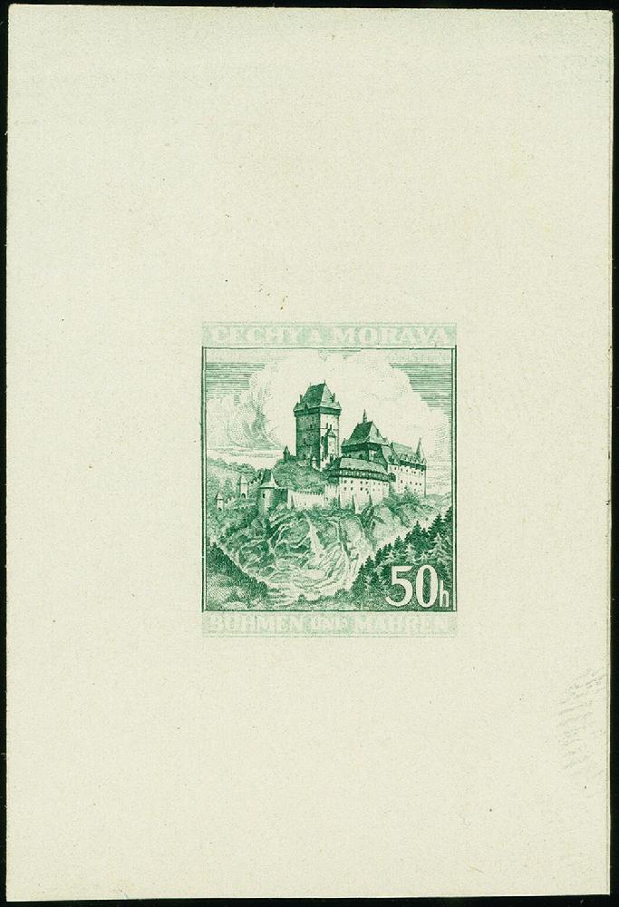 | Zusatzinformationen und Suchstichworte: | 383. Auktion Heinrich Köhler 14.–15. & 18.–23. März 2024 Los 2937 Böhmen und Mähren 1939, Burg Karlstein 50H. grün, Einzelabzug in von der endgültigen Ausgabe etwas abweichendem Format, die Schriftleisten sind nicht vollständig ausgearbeitet und weisen einen helleren Farbton auf, außerdem steht der Schriftzug "BÖHMEN UND MÄHREN" unten statt oben, auf ungummiertem Papier, tadellos, selten Ausruf 500,00 EUR |