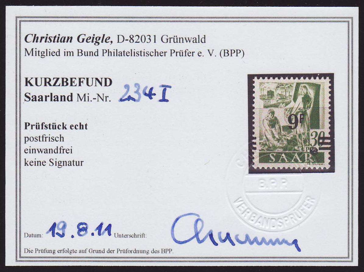 | Prüfgebiet: | Saarland (ab Mi-Nr. 206) |