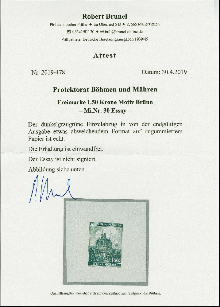 | Zusatzinformationen und Suchstichworte: | 383. Auktion Heinrich Köhler 14.–15. & 18.–23. März 2024 Los 2960 Böhmen und Mähren 1939, Landesmuseum und Turm Brünn 1,50K. dunkelgraugrün, Einzelabzug in von der endgültigen Ausgabe etwas abweichendem Format auf ungummiertem Papier, tadellos, selten Ausruf 500,00 EUR |