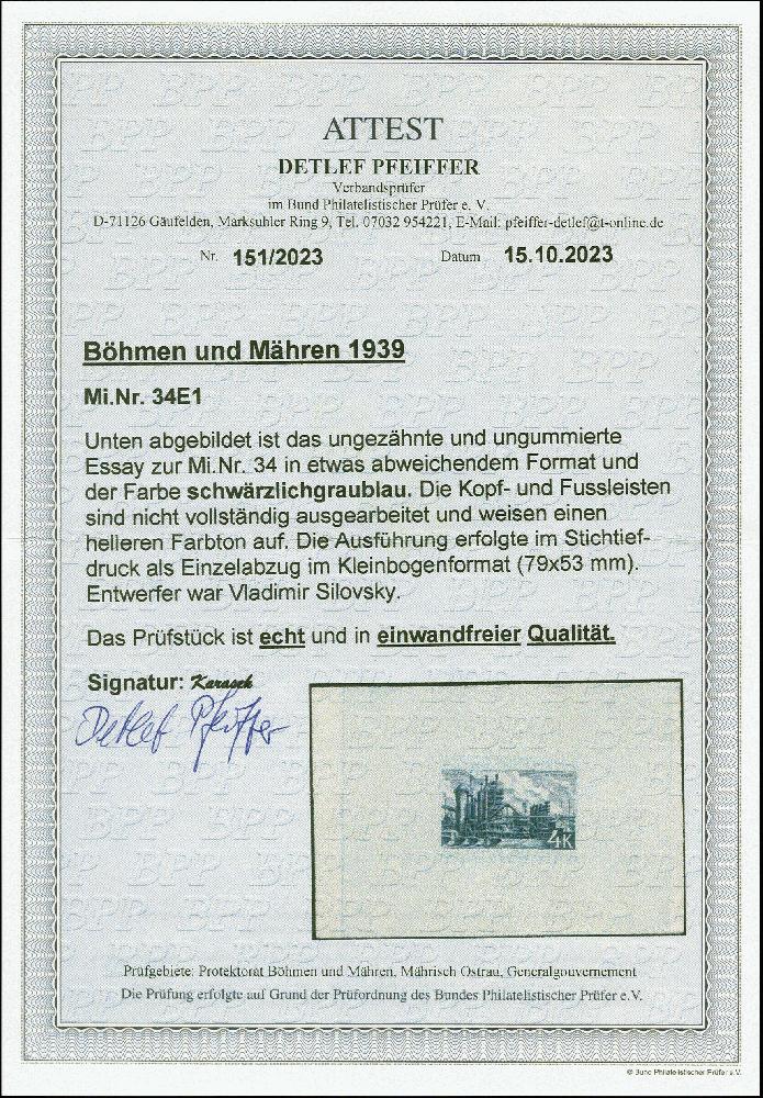 | Zusatzinformationen und Suchstichworte: | 383. Auktion Heinrich Köhler 14.–15. & 18.–23. März 2024 Los 2969 Böhmen und Mähren 1939, Industriewerke Mährisch-Ostrau 4K. schwärzlichgraublau, Einzelabzug in von der endgültigen Ausgabe etwas abweichendem Format, die Schriftleisten sind nicht vollständig ausgearbeitet und weisen einen helleren Farbton auf, tadellos, selten Ausruf 500,00 EUR |