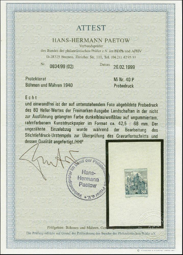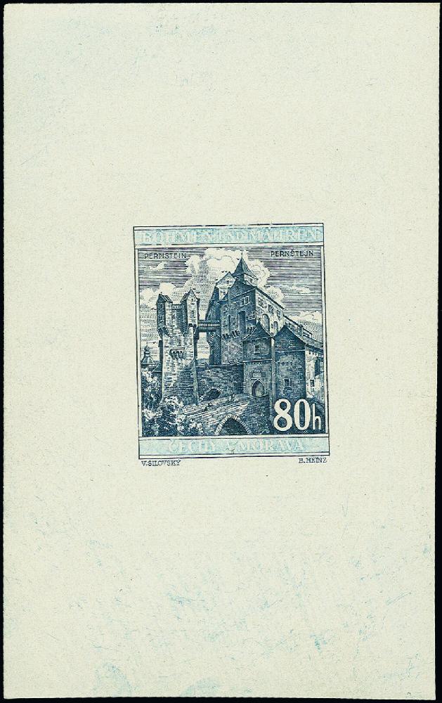 | Zusatzinformationen und Suchstichworte: | 383. Auktion Heinrich Köhler 14.–15. & 18.–23. März 2024 Los 2980 Böhmen und Mähren 1940, Burg Pernstein 80H. dunkelblaugrau, Einzelabzug in abweichendem Format, die Schriftleisten sind nicht vollständig ausgearbeitet und weisen einen helleren Farbton auf, auf ungummiertem Papier, tadellos, sehr selten Ausruf 500,00 EUR |