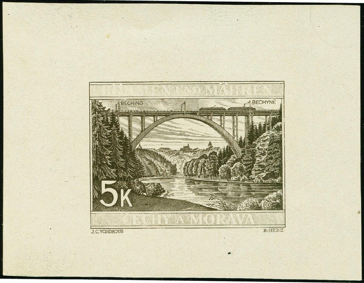 | Zusatzinformationen und Suchstichworte: | 383. Auktion Heinrich Köhler 14.–15. & 18.–23. März 2024 Los 2986 Böhmen und Mähren 1940, Lainsitz-Brücke mit Bechin im Hintergrund 5K. hellgrauviolett, Einzelabzug in abweichendem Format, die Schriftleisten sind nicht vollständig ausgearbeitet und weisen einen helleren Farbton auf, auf ungummiertem Papier, tadellos, selten Ausruf 500,00 EUR |