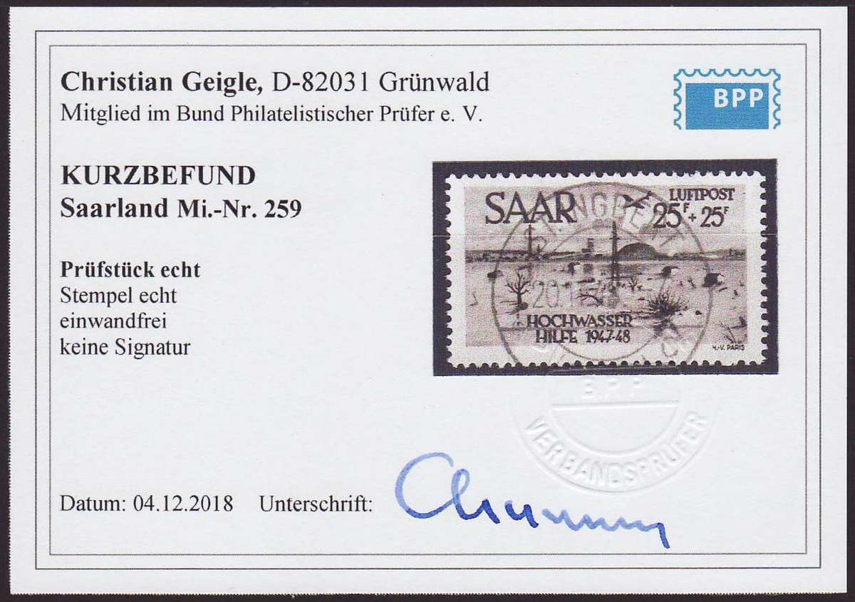 | Prüfgebiet: | Saarland (ab Mi-Nr. 206) |