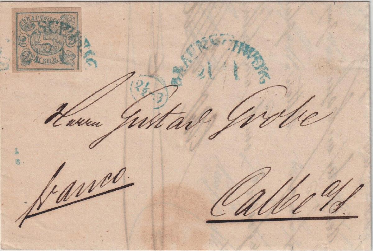 | Zusatzinformationen und Suchstichworte: | Südphila P. Feuser 101. Auktion 16. März 2024 Los 72 Altdeutschland Braunschweig 2 Sgr. blau, breitrandiges Kabinettstück (unten kl. Druckausfall) mit Bogenstempel BRAUNSCHWEIG auf Brief nach Calbe a.S. (unten unbed. Bräune) Ausruf 250,00 EUR |