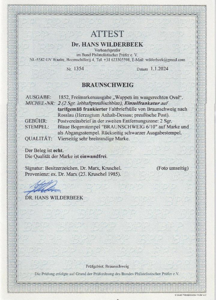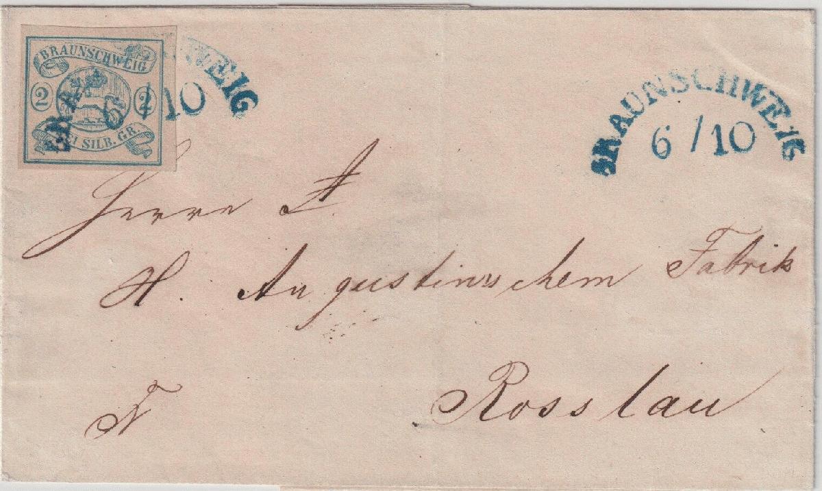 | Zusatzinformationen und Suchstichworte: | Südphila P. Feuser 101. Auktion 16. März 2024 Los 73 Altdeutschland Braunschweig 2 Sgr. blau, sehr breitrandig mit Bogenstempel BRAUNSCHWEIG auf schönem kleinem Luxusbrief nach Rosslau Ausruf 300,00 EUR |