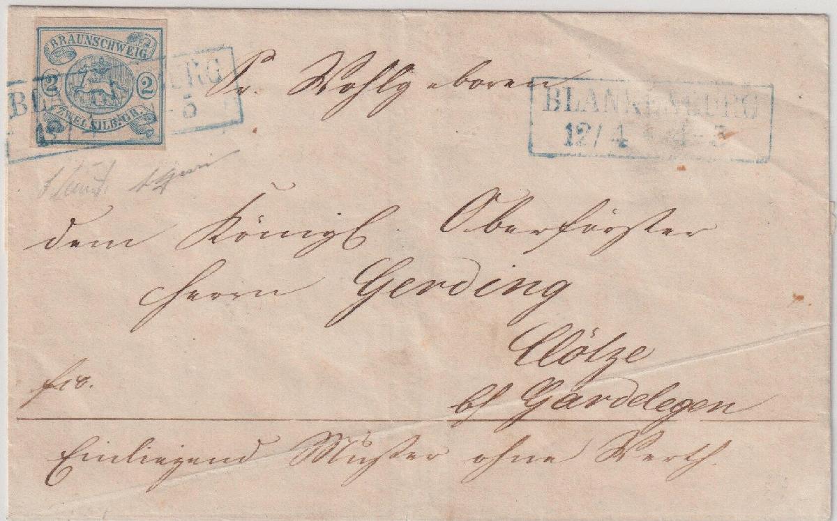 | Zusatzinformationen und Suchstichworte: | Südphila P. Feuser 101. Auktion 16. März 2024 Los 74 Altdeutschland Braunschweig 2 Sgr. blau, breitrandiges Kabinettstück mit K2 BLANKENBURG auf Brief "Einliegend Muster ohne Werth" nach Clötze (bei Gardelegen), sehr seltener Warenprobenbrief der ersten Ausgabe Ausruf 400,00 EUR |