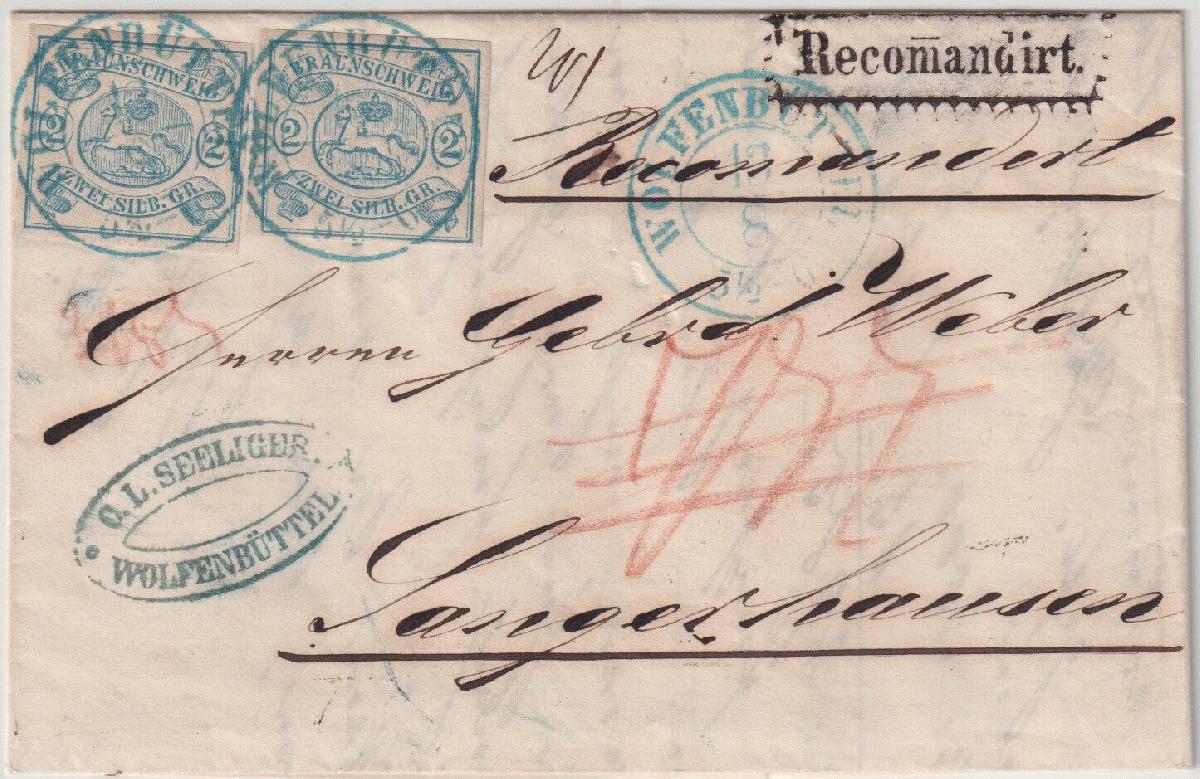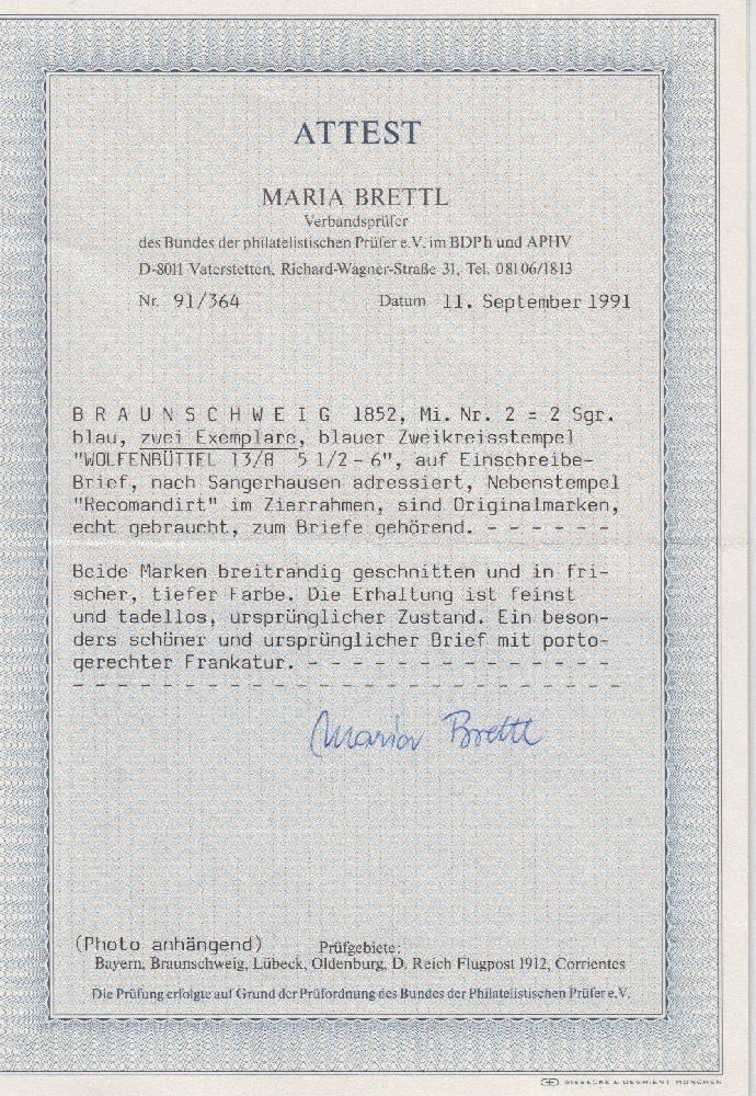 | Zusatzinformationen und Suchstichworte: | Südphila P. Feuser 101. Auktion 16. März 2024 Los 77 Altdeutschland Braunschweig 2 Sgr. blau, zwei breitrandige und farbfrische Exemplare mit klarem K2 WOLFENBÜTTEL auf Luxus-Chargébrief (schwarzer R1 RECOMMANDIRT und Rötelgitter) nach Sangerhausen, MEhrfachfrankaturen dieser Marke zählen zu den großen Braunschweig-Raritäten, dieser wundervolle Brief aus der Sammlung Dr. Mark erzielte 1985 DM 16.000,- und ist von hohem Liebhaberwert Ausruf 5.000,00 EUR |