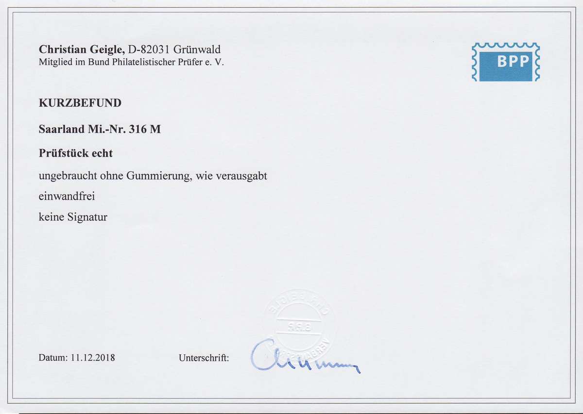 | Zusatzinformationen und Suchstichworte: | Christian E. Geigle Briefmarkenfachhandel Los 0003746168 Saarland 1952, IMOSA-Tag der Briefmarke, 30 + 10 Fr. schwarzultramarin als Ministerblock, ungebraucht ohne Gummierung (wie verausgabt), in perfekter Luxusqualität, Auflage nur 150 Stück, unsigniert mit FKB Geigle "einwandfrei". Festpreis 195,00 EUR |