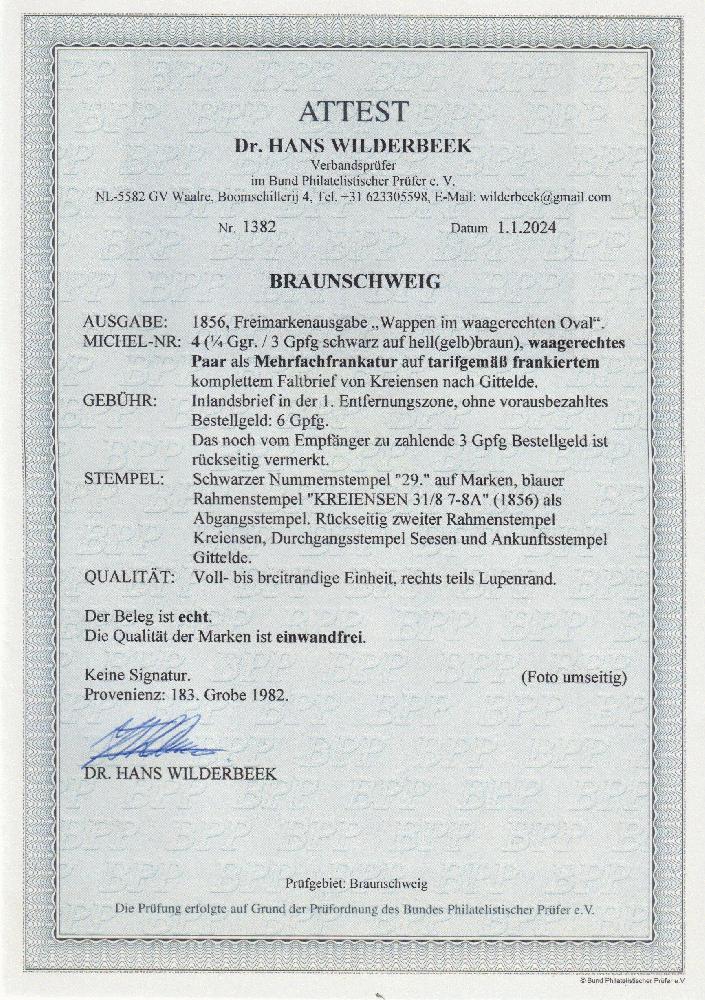 | Prüfer: | Wilderbeek, Hans (BPP (Bund Philatelistischer Prüfer)) |