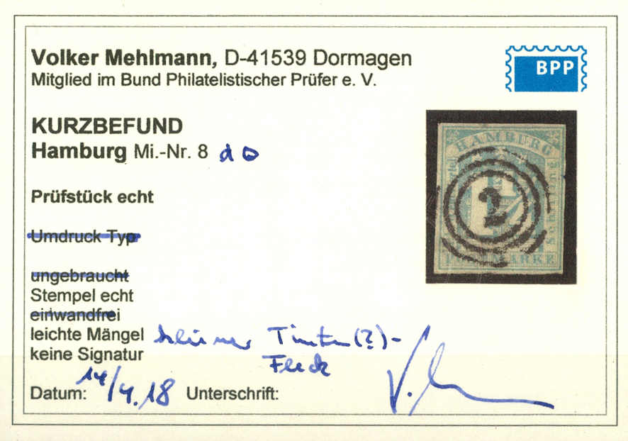 | Prüfer: | Mehlmann, Volker (BPP (Bund Philatelistischer Prüfer)) |