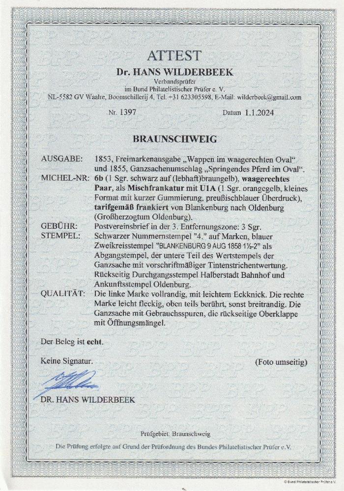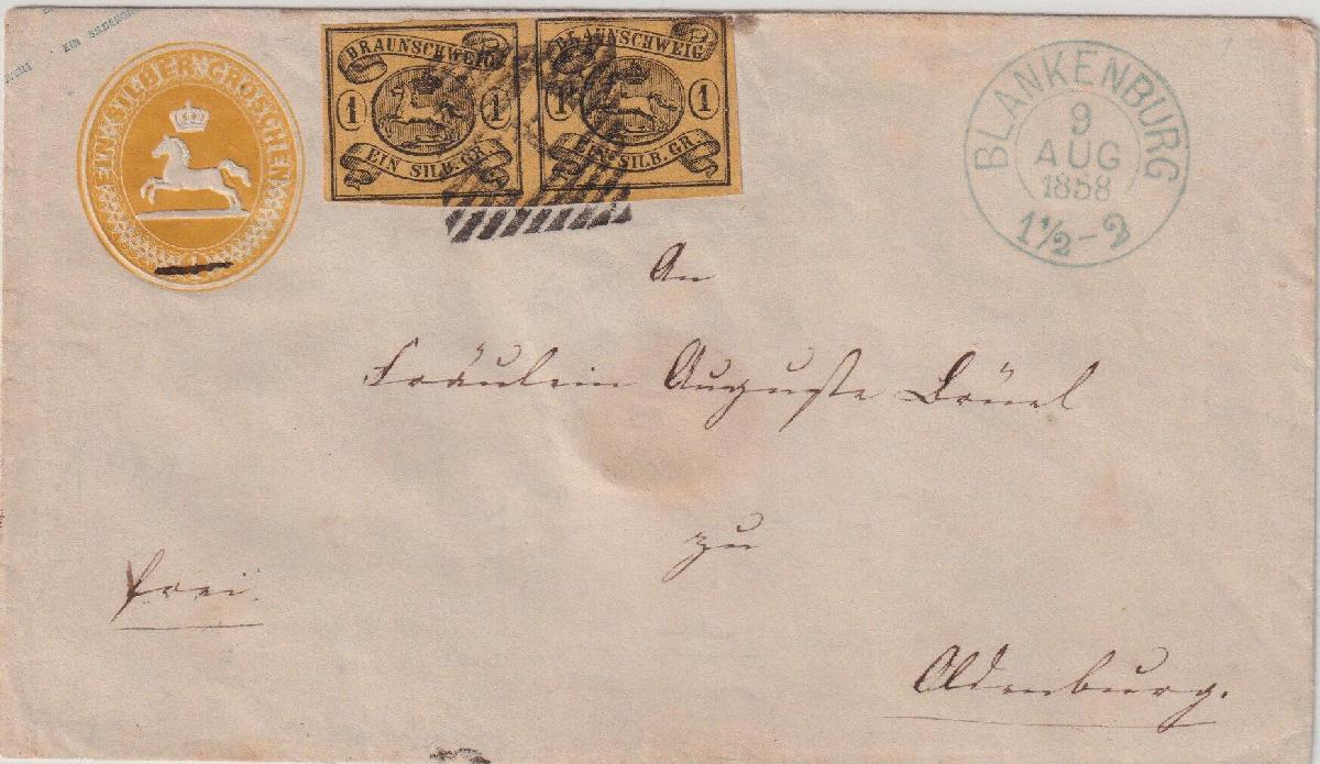| Zusatzinformationen und Suchstichworte: | Südphila P. Feuser 101. Auktion 16. März 2024 Los 138 Altdeutschland Braunschweig 1 Sgr. a. bräunlichgelb, waagr. Paar (kl. Beanstandung) als seltene Zusatzfrankatur mit Stempel "4" Blankenburg auf Couvert 1 Sgr. gelb nach Oldenburg Ausruf 200,00 EUR |