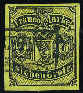 | Zusatzinformationen und Suchstichworte: | Gert Müller 114. Auktion Auktionstermin: 25. Mai 2022 Los 2797 Altdeutschland Hamburg 7 Gr. schwarz auf rötlichgelb, dickeres Papier, farbfrisches allseits breitrandiges Luxusstück mit sauber aufgesetztem Rahmenstempel "BREMEN". In dieser excellenten Qualität nicht häufig angeboten. Fotobefund "TADELLOS ERHALTEN" Neumann BPP. Ausruf 600,00 EUR |
