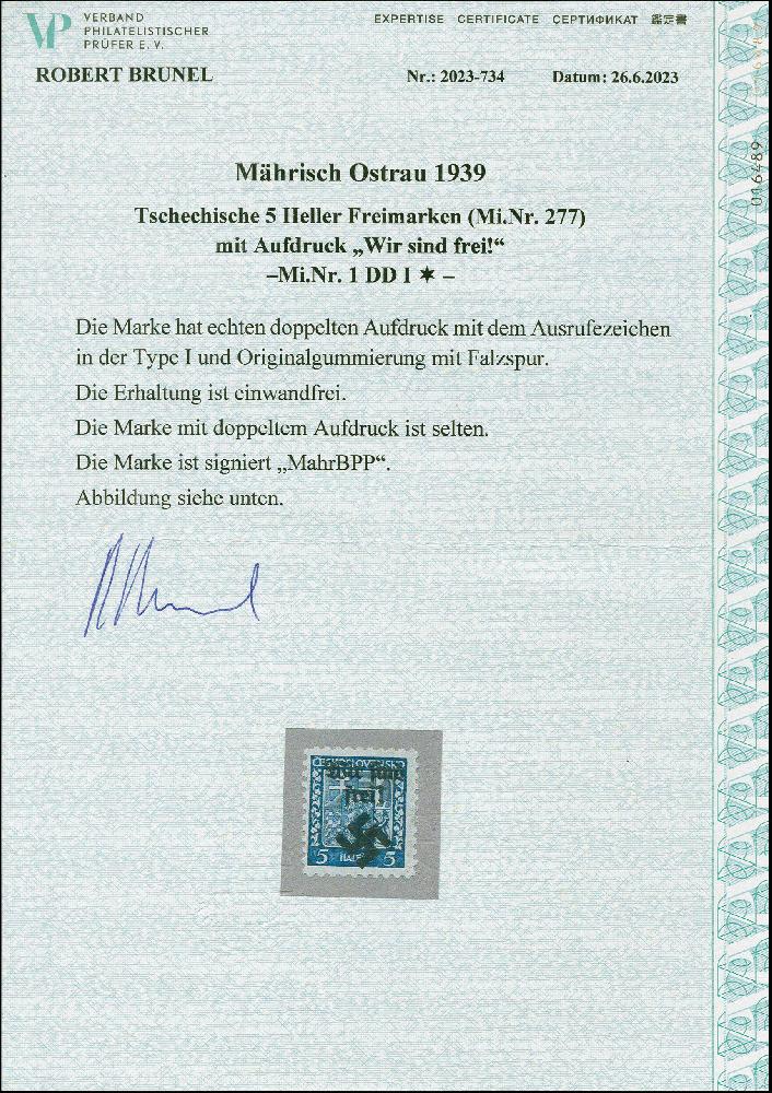 | Zusatzinformationen und Suchstichworte: | 383. Auktion Heinrich Köhler 14.–15. & 18.–23. März 2024 Los 3011 Böhmen und Mähren Mährisch-Ostrau 5 H. mit klarem Doppelaufdruck in Type I, sauber ungebraucht, tadellos Ausruf 80,00 EUR |