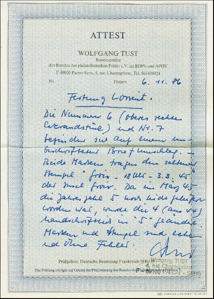 | Prüfgebiet: | Deutsche Besetzung WK 2 Frankreich Lorient |