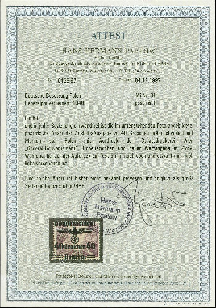 | Prüfer: | Paetow, Hans-Hermann (AIEP (Association internationale des experts en philatélie)) |
