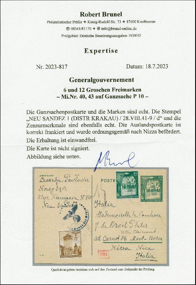 | Zusatzinformationen und Suchstichworte: | 383. Auktion Heinrich Köhler 14.–15. & 18.–23. März 2024 Los 3023 Generalgouvernement 1940, Bauwerke 6 und 12 Gr. als Zufrankatur mit Stempel "NEU SANDEZ 28.VIII.41" auf zensierter Ganzsachenkarte 12 Gr. nach Nizza, tadellos Ausruf 80,00 EUR |