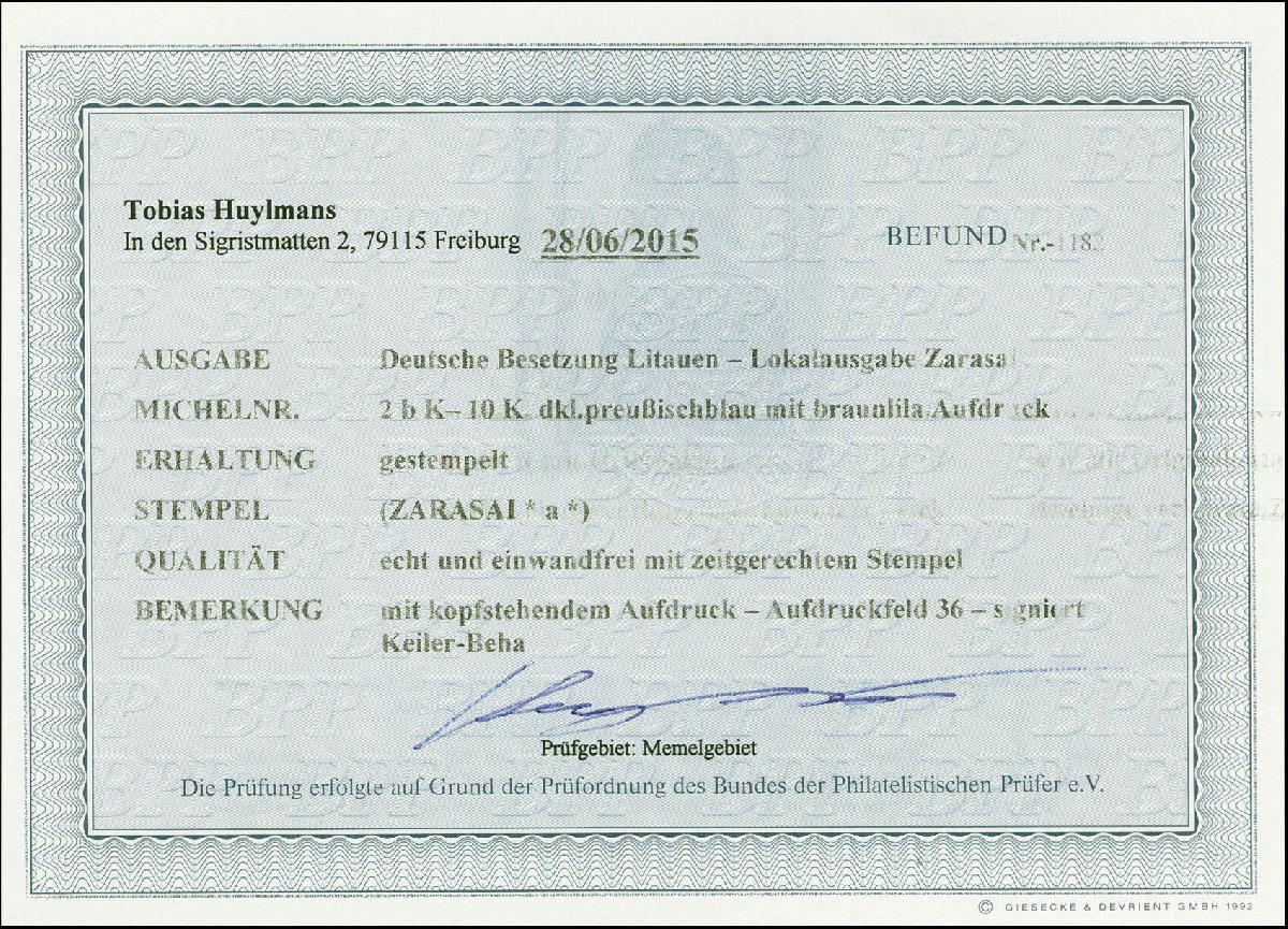 | Prüfgebiet: | Deutsche Besetzung WK 2 Litauen Zarasai |