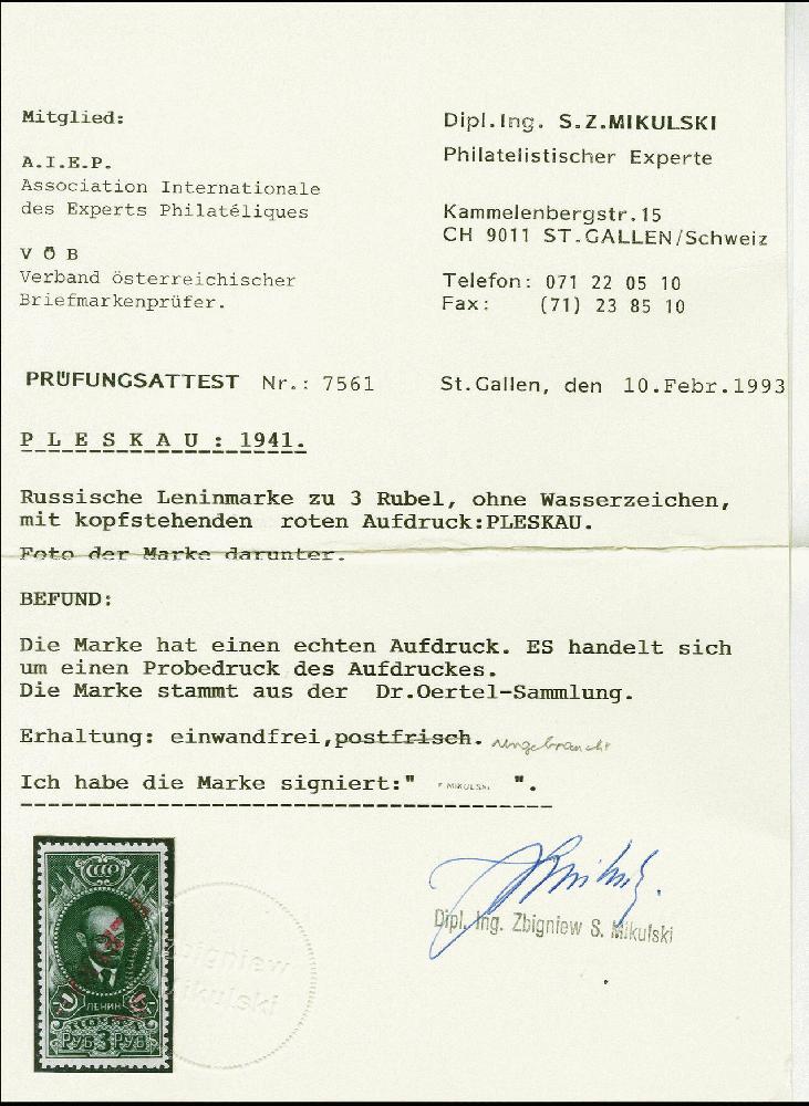 | Prüfgebiet: | Deutsche Besetzung WK 2 Russland Pleskau |