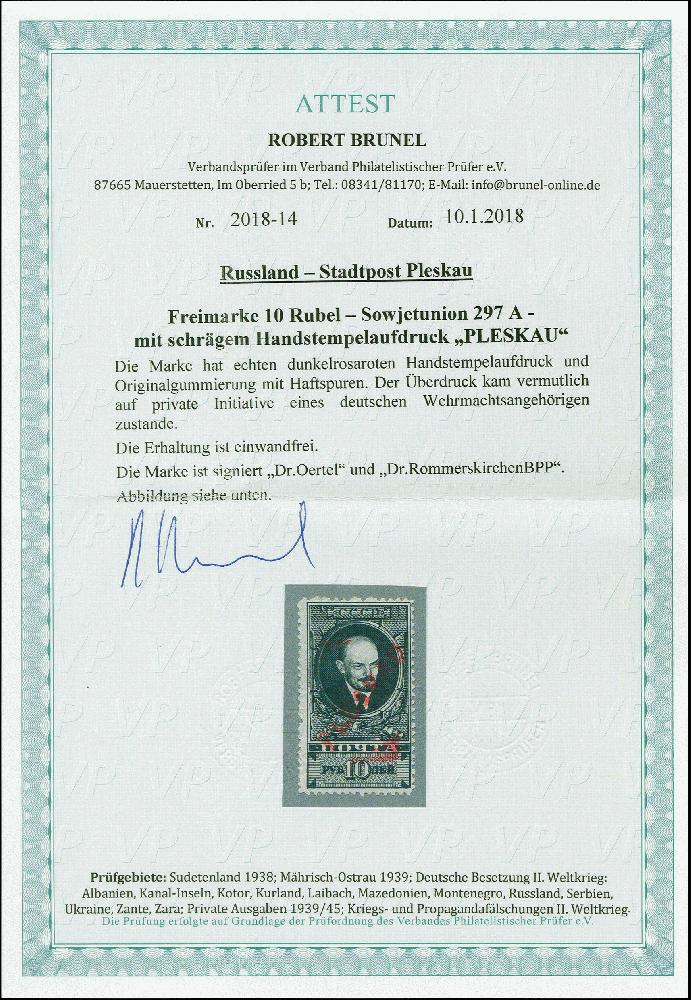 | Prüfgebiet: | Deutsche Besetzung WK 2 Russland Pleskau |