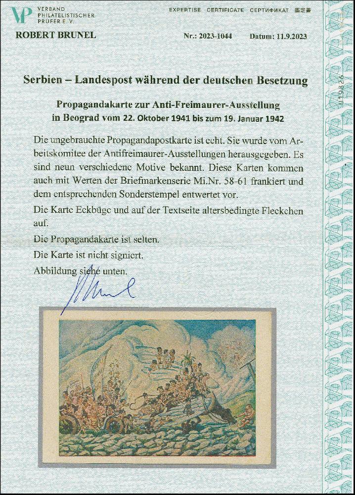 | Zusatzinformationen und Suchstichworte: | 383. Auktion Heinrich Köhler 14.–15. & 18.–23. März 2024 Los 3181 Deutsche Besetzung II. WK Serbien Anti-Freimaurer-Ausstellung: Propagandakarte "Reise serbischer Schriftsteller zum Parnass..", ungebraucht, winzig fleckig, kleiner Eckbug, sonst tadellos, sehr selten Ausruf 250,00 EUR |
