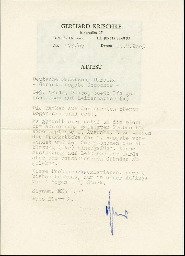 | Prüfgebiet: | Deutsche Besetzung WK 2 Ukraine Südukraine |
