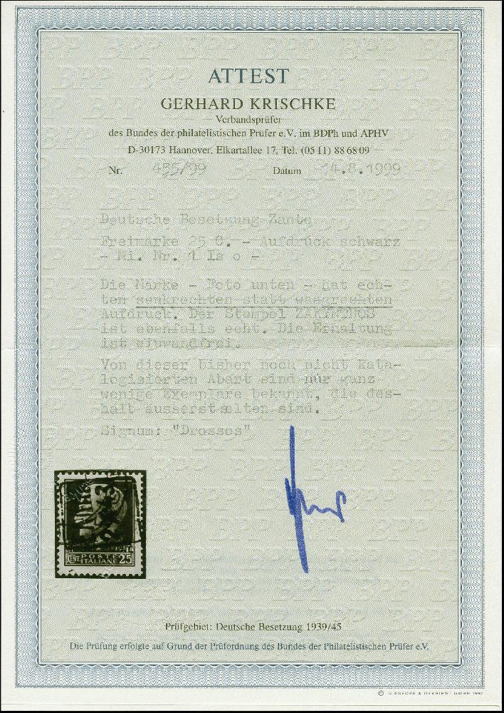 | Prüfgebiet: | Deutsche Besetzung WK 2 Zante |