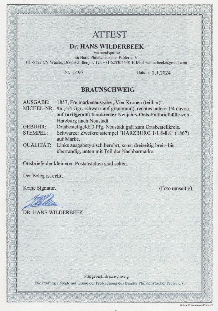 | Prüfer: | Wilderbeek, Hans (BPP (Bund Philatelistischer Prüfer)) |