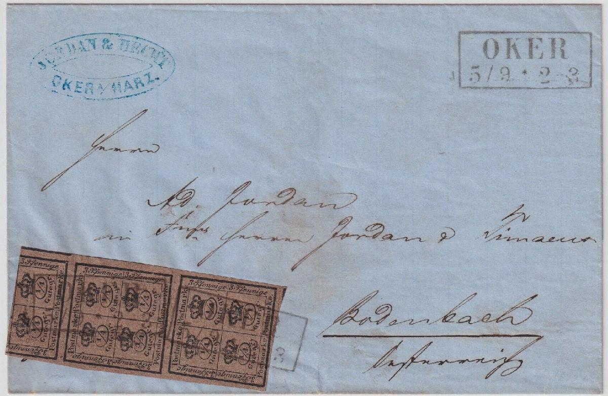 | Zusatzinformationen und Suchstichworte: | Südphila P. Feuser 101. Auktion 16. März 2024 Los 194 Altdeutschland Braunschweig 10/4 Ggr. a. braun, breitrandig und farbfrisch mit R2 OKER auf Luxusbrief nach Bodenbach/Österreich, seltene Verwendung der Inlandsmarke als 3 Groschen-Porto ins Ausland Ausruf 300,00 EUR |
