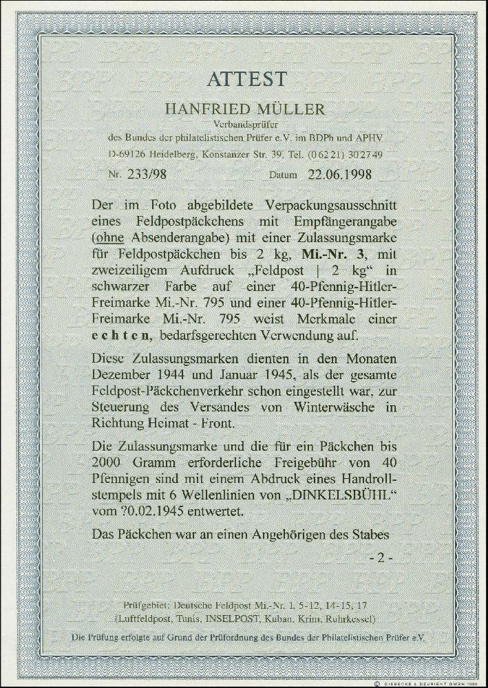 | Prüfgebiet: | Deutsches Reich Feldpost WK 2 |