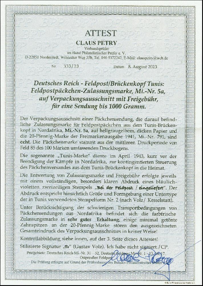 | Prüfer: | Petry, Claus (BPP (Bund Philatelistischer Prüfer)) |