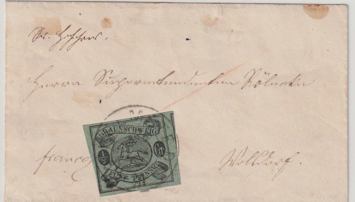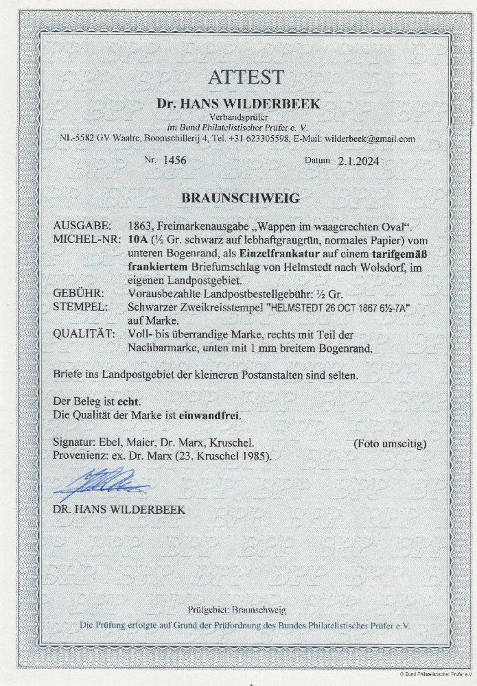 | Zusatzinformationen und Suchstichworte: | Südphila P. Feuser 101. Auktion 16. März 2024 Los 212 Altdeutschland Braunschweig 1/2 Sgr. a. grün, voll- bis breitrandiges Kabinettstück mit K2 HELMSTEDT auf sehr kleinem Brief nach Wolsdorf, seltene Landpostzustellung Ausruf 400,00 EUR |