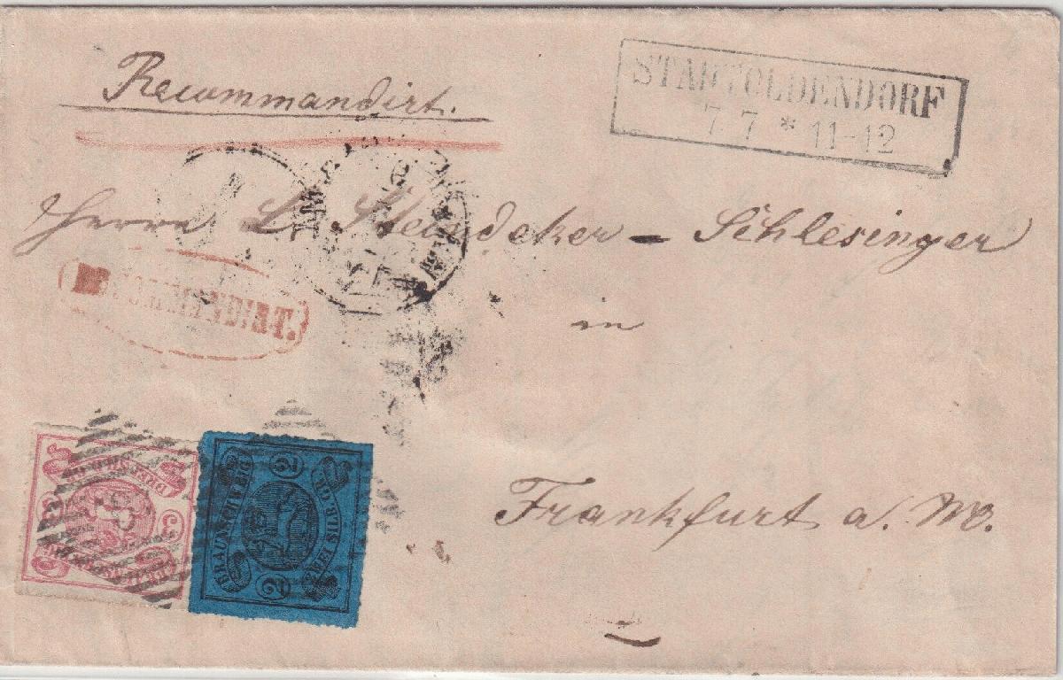 | Zusatzinformationen und Suchstichworte: | Südphila P. Feuser 101. Auktion 16. März 2024 Los 276 Altdeutschland Braunschweig 2 Sgr. a. blau und 3 Sgr. rosa, bogenförmig durchstochen, tieffarbige Kabinettstücke mit Stempel "40" Stadtoldendorf auf Recobrief nach Frankfurt a.M., eine seltene Frankatur Ausruf 1.000,00 EUR |