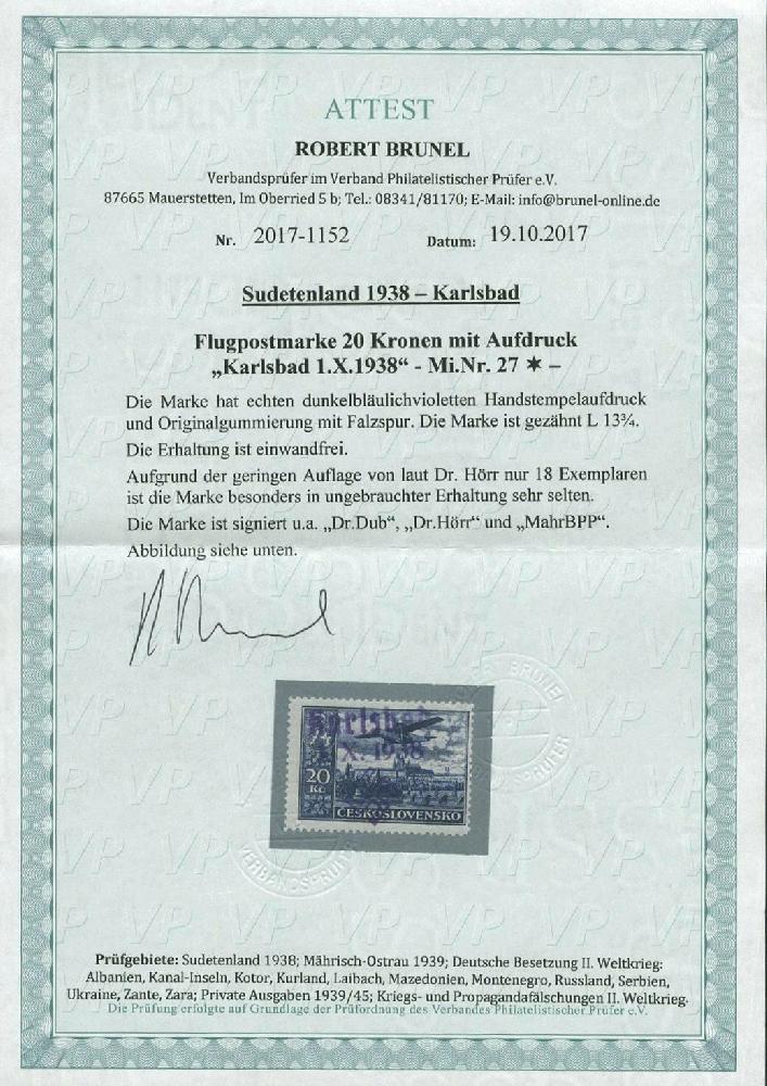 | Prüfgebiet: | Sudetenland Karlsbad |