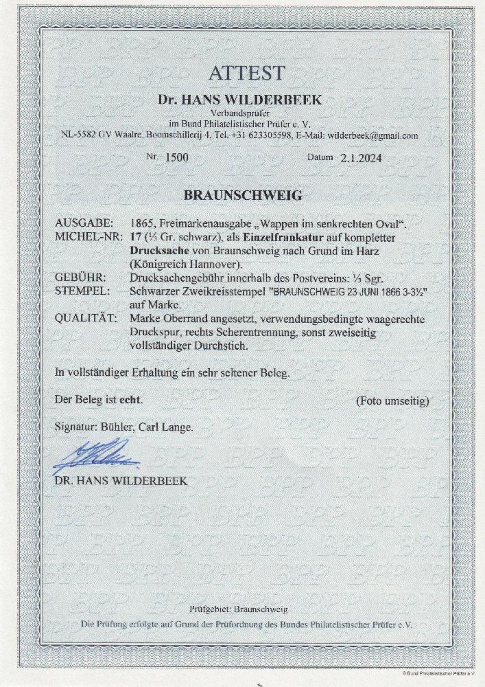 | Prüfgebiet: | Altdeutschland Braunschweig |