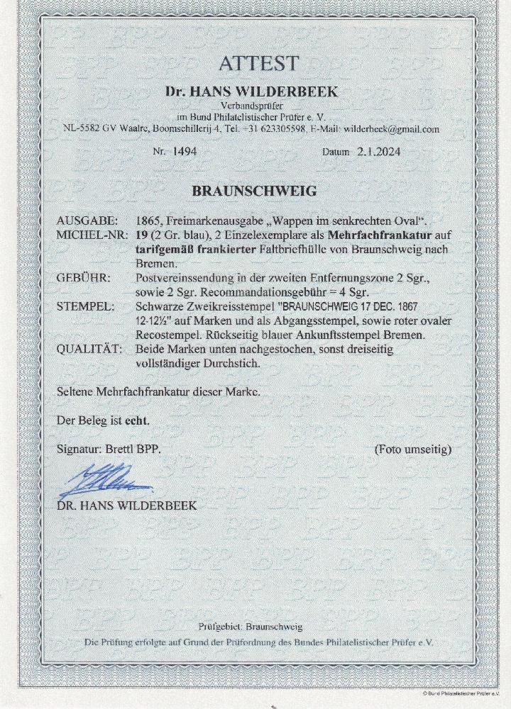 | Prüfer: | Wilderbeek, Hans (BPP (Bund Philatelistischer Prüfer)) |
