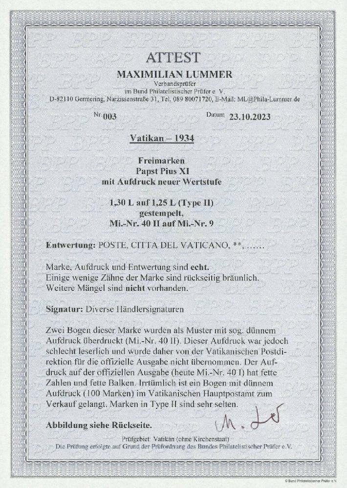 | Prüfer: | Lummer, Maximilian (BPP (Bund Philatelistischer Prüfer)) |