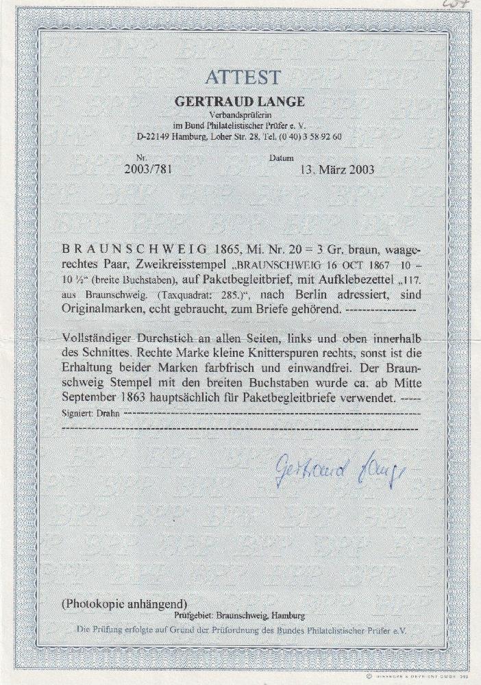 | Prüfer: | Lange, Gertraud (BPP (Bund Philatelistischer Prüfer)) |
